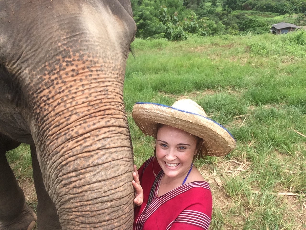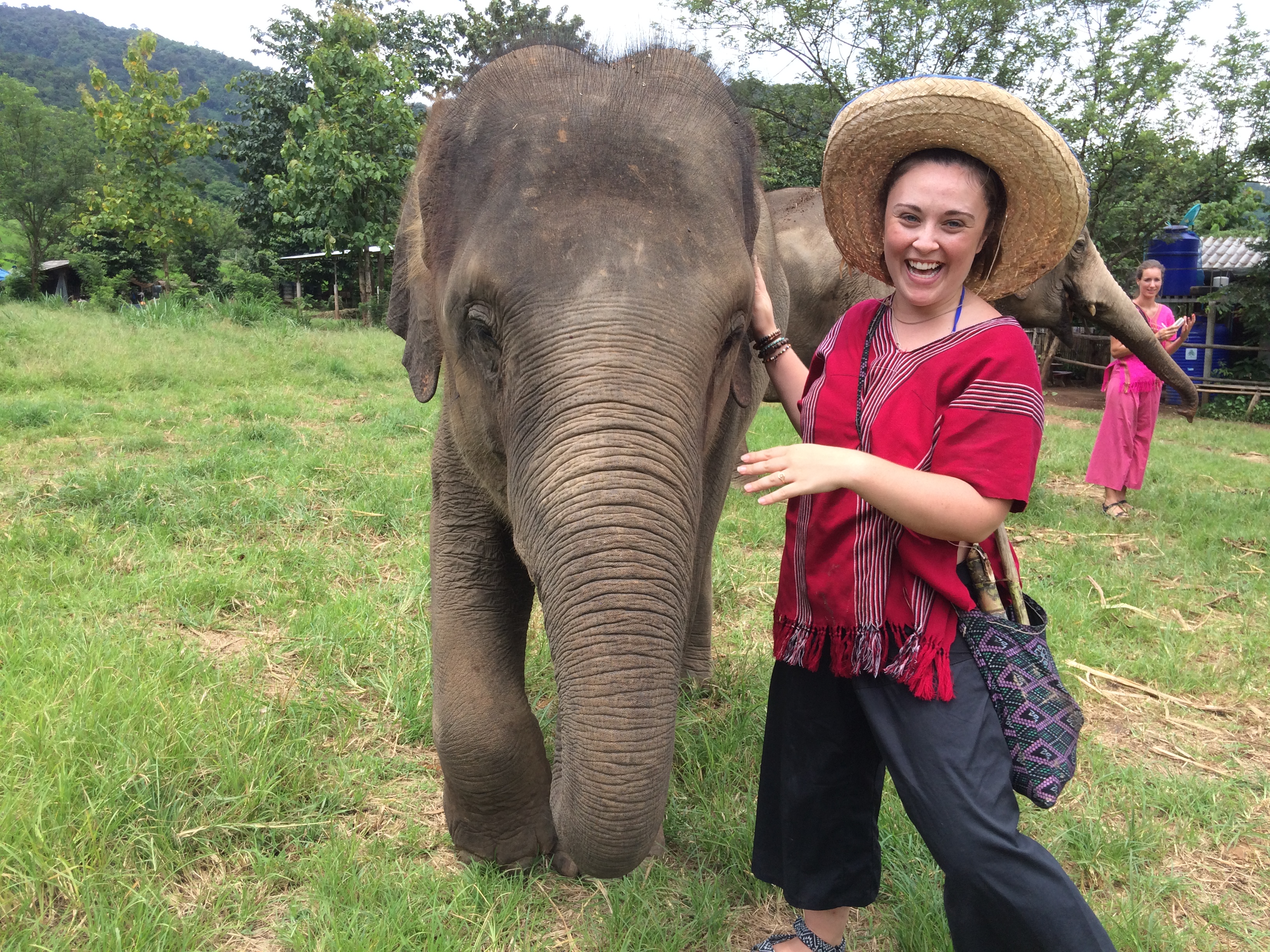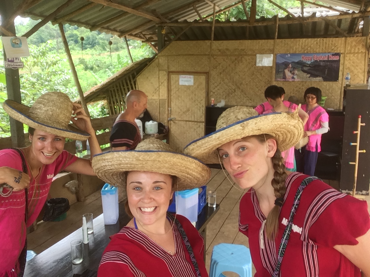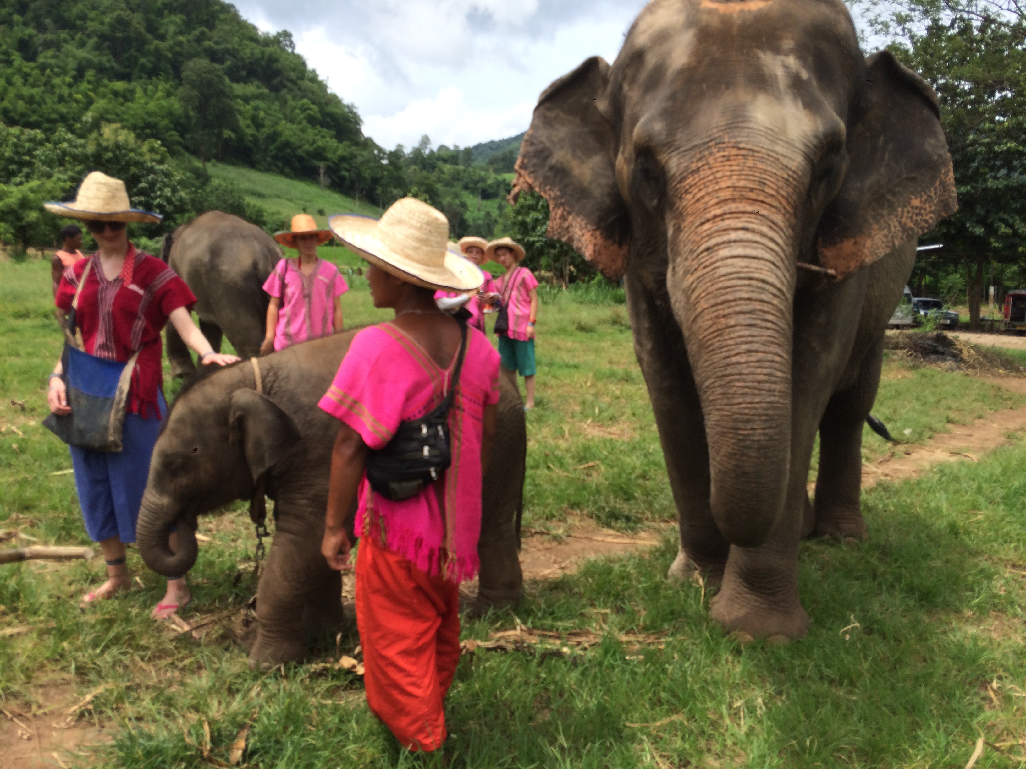 When I arrived in Chiang Mai I felt horrible about supporting the unethical elephant farm the week prior, and vowed that I would go and support an elephant sanctuary. Where abused elephants are brought to be rehabilitated by volunteers. I chose Happy Elephant Home because they reach out to Mahouts who are known to be abusing their animals. The sanctuary takes their elephant for a week, takes care of them and then invites the Mahout to see how much happier the animals are and instructs them on how to care for the elephants themselves. It’s truly a great organization and I believe that the work they do is critically important. Animal tourism creates hundreds of jobs in an already struggling economy in a developing nation. To eradicate animal tourism all together is unrealistic- but people need to be educated on the proper treatment of animals. I spent about $300USD but the experience was priceless. I spent the day with elephants, I got to feed them sugar cane and bananas. They fed us an amazing authentic Thai curry lunch. We got to trek through a Thai jungle in the rain with the elephants- which actually made the experience better, because it felt a little more exotic with the rain. We got to bathe the elephants in a mud bath, and then walk down to a river to swim and play with them. We also got to wear high fashion Mahout clothes so ours wouldn’t be ruined.