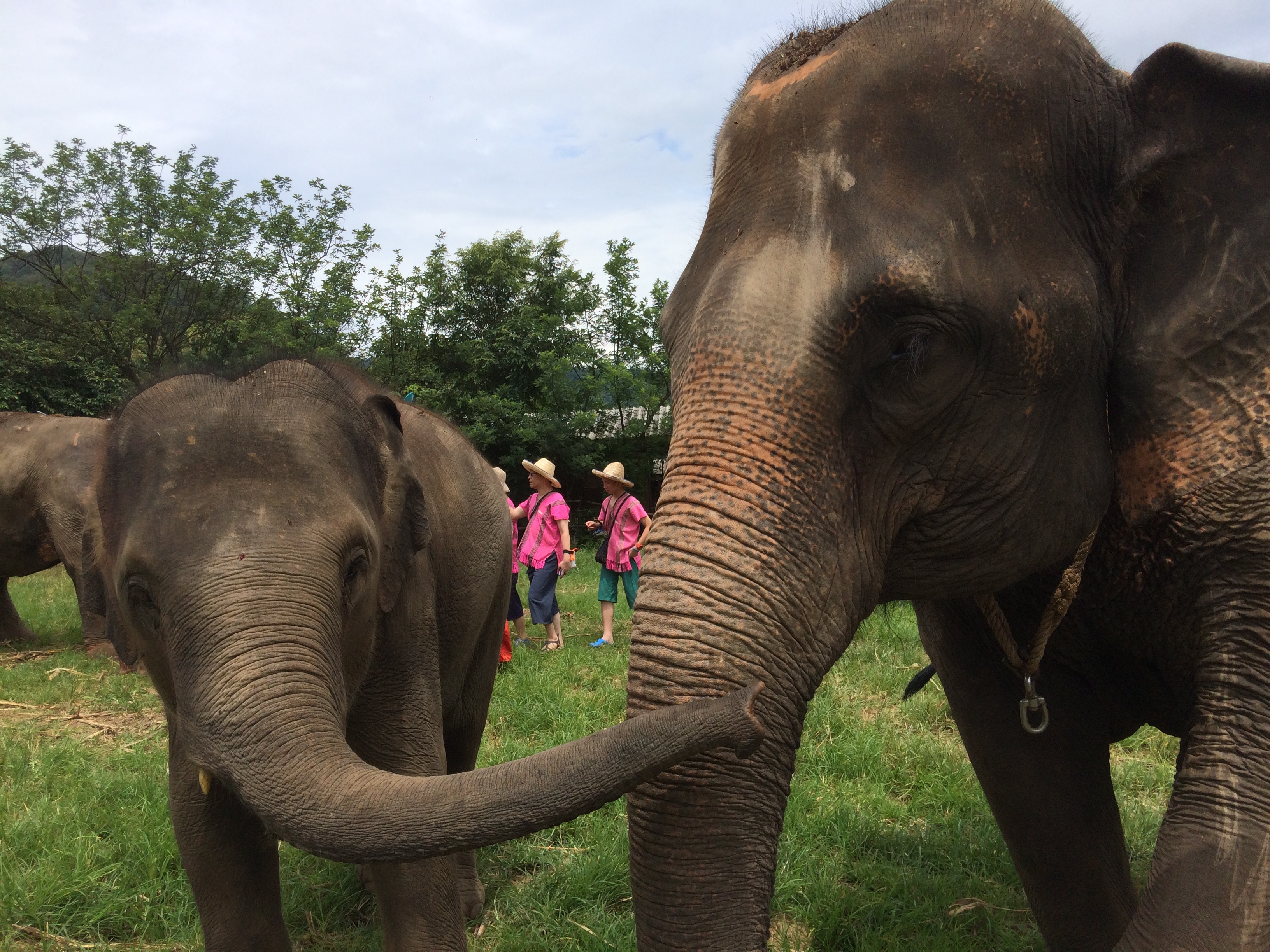 This experience was 100% the best, most rewarding and unforgettable thing I have ever done. I can’t put to words how amazing it feels to stand next to a creature so massive and beautiful and to not be afraid. I loved that Happy Elephant Home limited the number of people allowed on each tour so as to not overwhelm the elephants. There were 4 all together: 2 very old ones which they owned (mamma and grandaddy). Those two just didn’t have time for tourists and they kept to themselves eating all day. I don’t blame them, that’s all I want to do when I’m old. Then there was a teenaged elephant that wasn’t theirs (I forget it’s name but she was adorable!) and then there was bang bang. The baby elephant that “keep getting in trouble” because he was angst and “keep breaking the fence!” She was born there, and had never been exposed to animal abuse or tourism, so she was happy and full of life. Because Bang Bang was a baby, she had was the smallest, and had the most attitude out of all the elephants. I knew we would bond, but I didn’t know to what extent. On our way to the sanctuary, we were instructed not to bend down to bang-bang’s eye level, because she’ll think you’re playing. “This is no-no because bang-bang is still elephant, and she will crush you if she plays with you.” What they didn’t tell us is that bang-bang was 5″ tall- just like me. Obviously we would be at eye level.