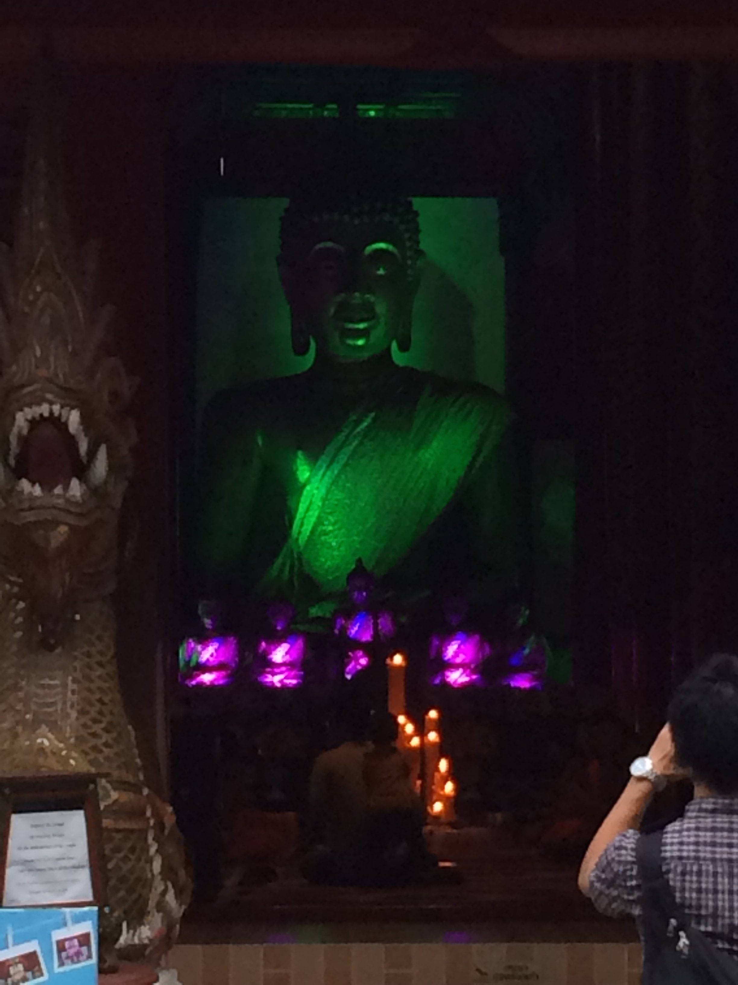 After yoga was over, I went across the street to see what all the yelling was about (I know it’s called chanting, people- alright?!) I really wanted to do a “monk chat” where you donate however much money you can spare to support the temple, and you get to talk to a monk. I had already been blessed by a magic monk on top of a mountain, where his garden is filled with opium…buuuutttt I didn’t get a bracelet so it’s kind of like “does it actually count, now?” I didn’t have time though, so I guess I’ll never know. The grounds of this temple were stunning, though so it wasn’t all for nothing. Right?